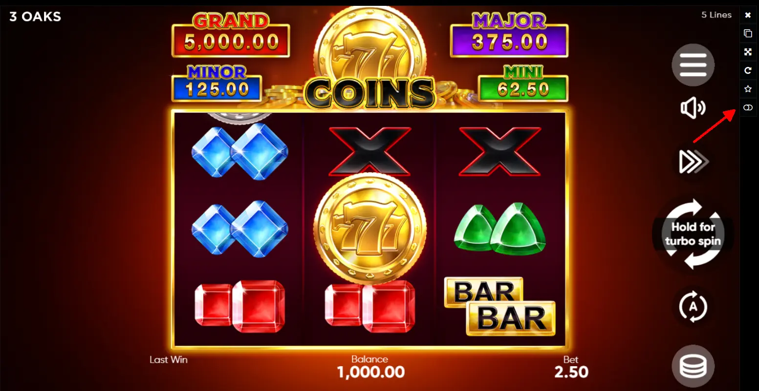 Дар слоти 777 Coins, функсияи бозии автоматикӣ барои оёбӣ бозингарон пешкаш шудааст. Ин функсия имкон медиҳад, ки шумораи таҳрикҳои автоматикӣ ва параметрҳои шарифро муайян кунед. Ин хусусият махсусан барои онҳое, ки мехоҳанд бе иштирок мунтазам дар шариф бозӣ кунанд, муфид аст.